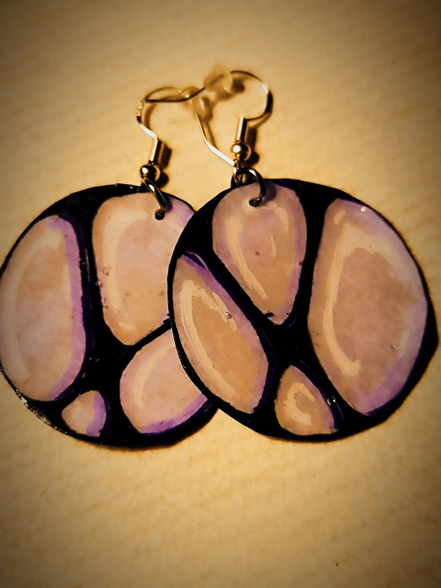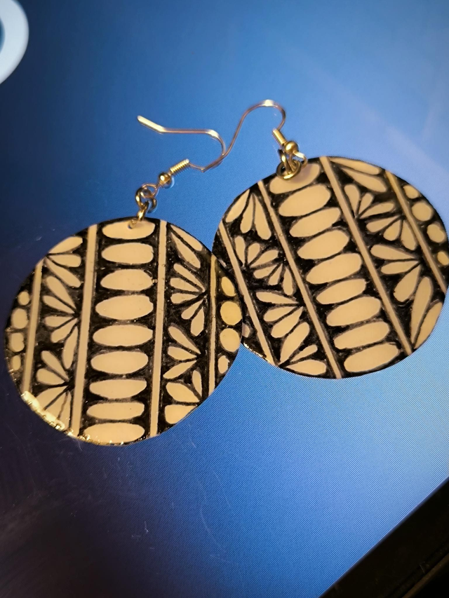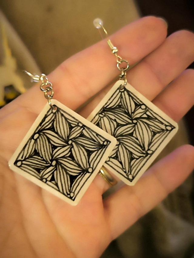 Boucles d'oreilles alliant zentangle et résine UV. .