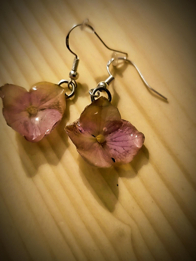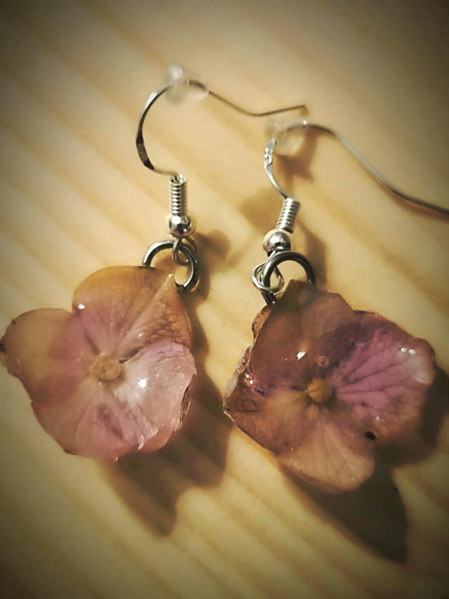 Boucles d'oreilles résine UV et hortensias