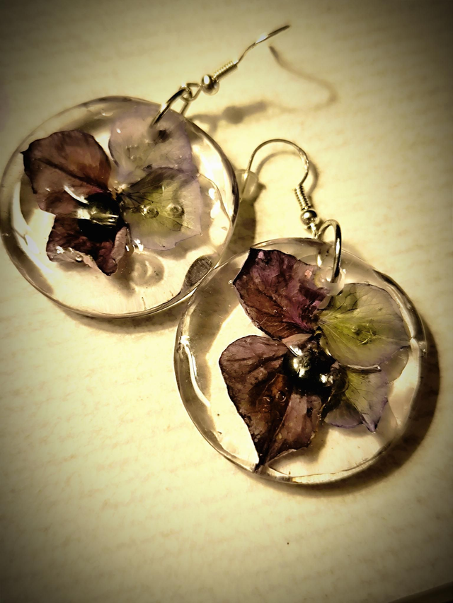 Boucles d'oreilles pétales d'hortensia et perles