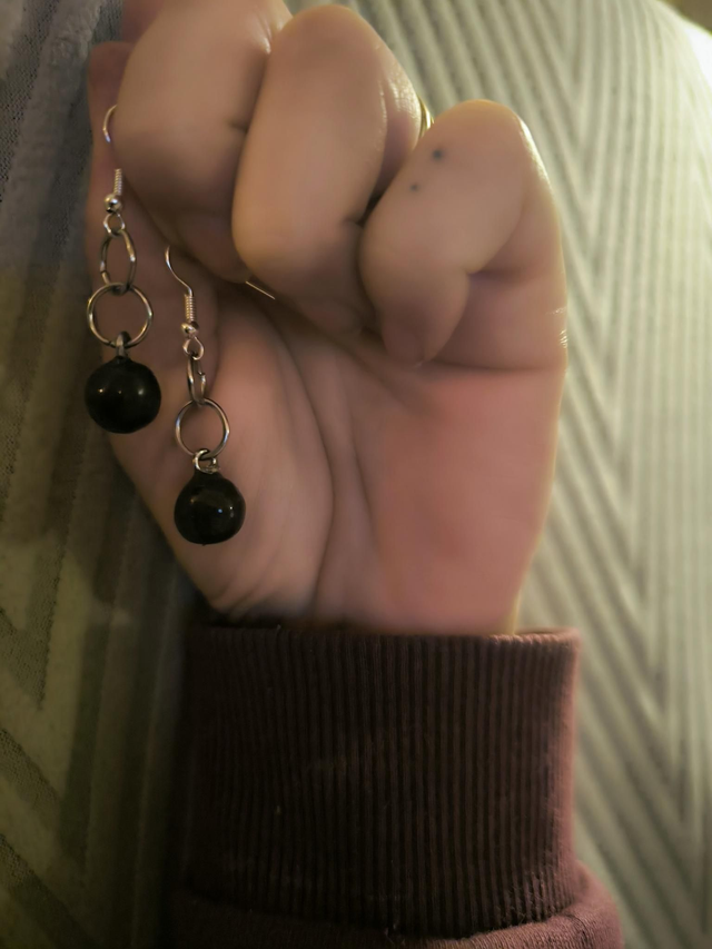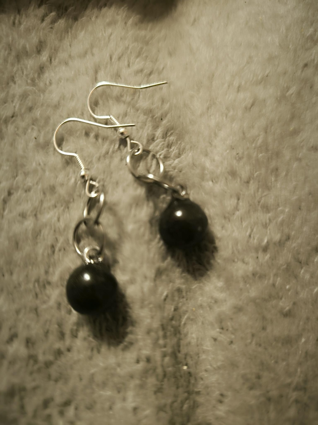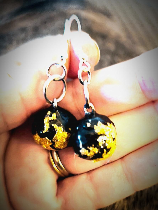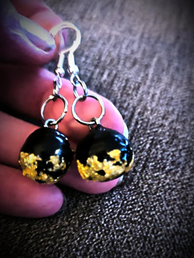Boucles d'oreilles sphères noir et or