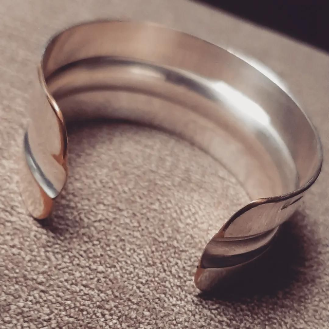 Bracelet en métal argenté d'où les bords en laiton.