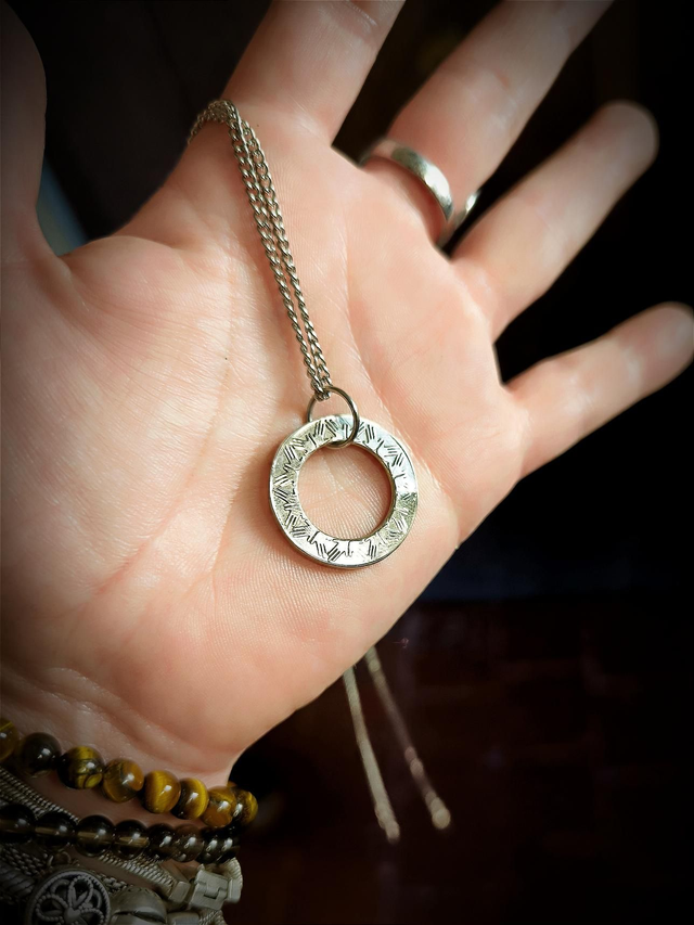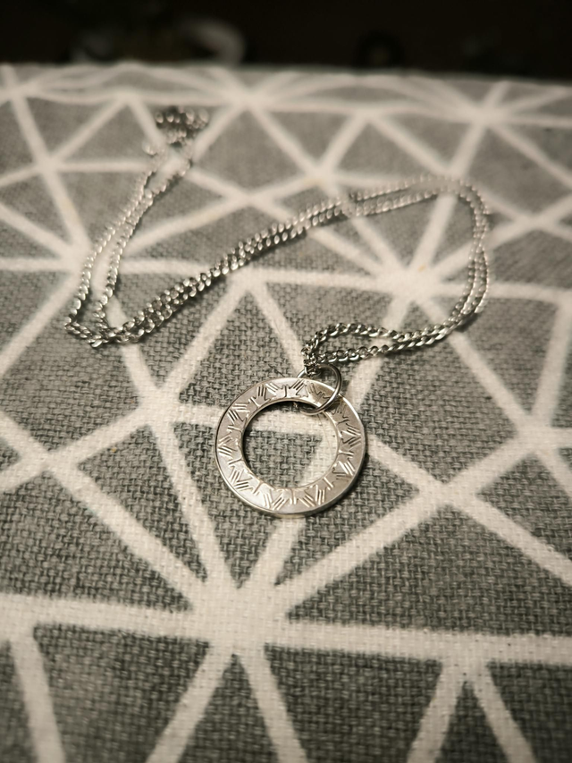 Pendentif métal argenté, perles et chaîne en argent sterling