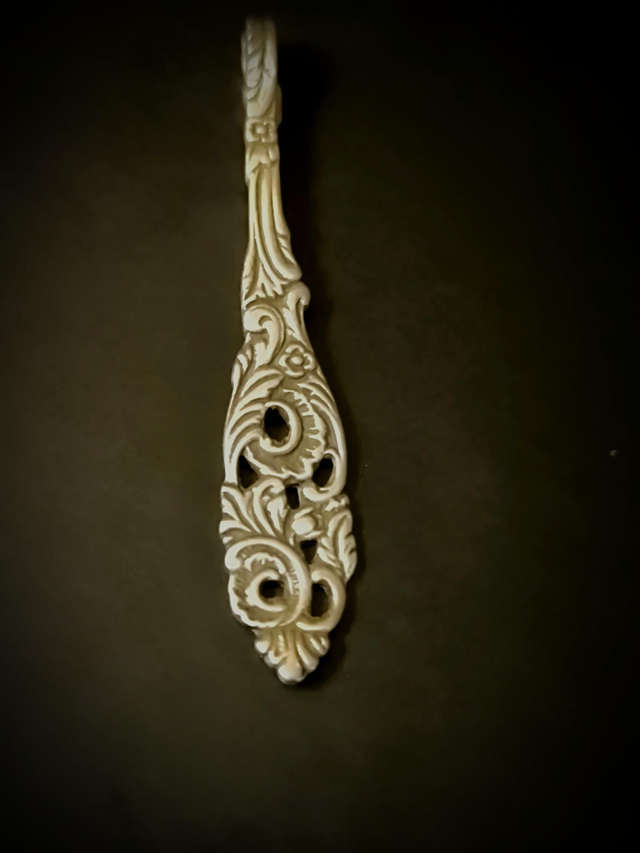 Porte-clé en métal argenté, upcycling d'une petite cuillère.